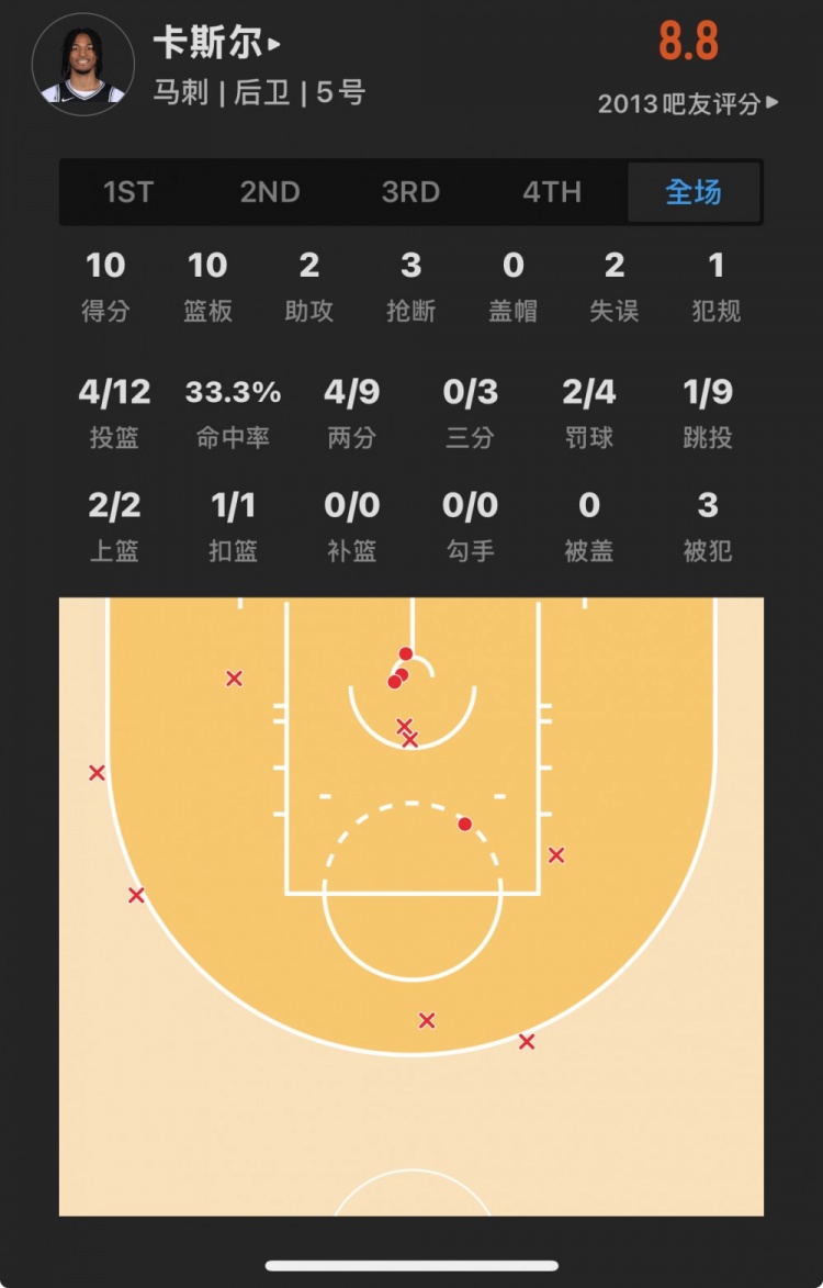 馬刺4號秀 斯蒂芬-卡斯爾 登場(chǎng)25.9分鐘