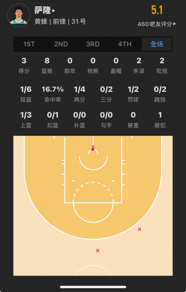黃蜂6號秀 提賈尼-薩隆 登場(chǎng)24.0分鐘