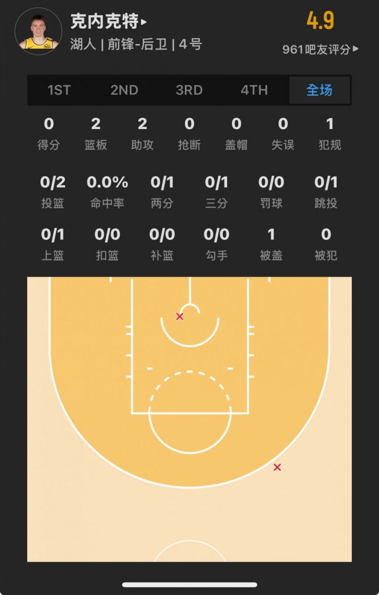 湖人17號秀 道爾頓-克內克特 登場(chǎng)13.4分鐘