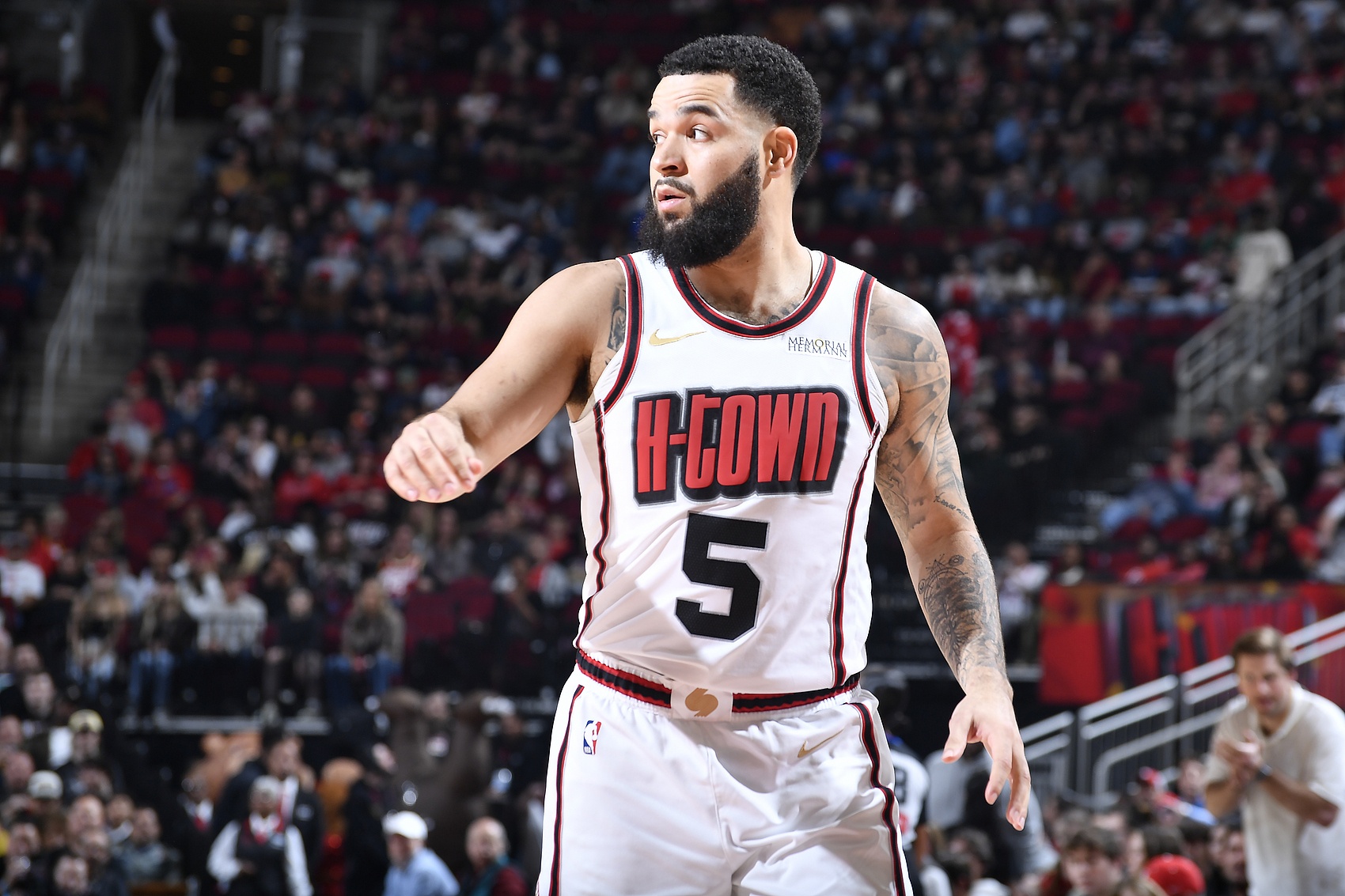 火箭面臨的特殊挑戰(與這位提到的“瓶頸”有所不同)在于范弗里特的續約問(wèn)題帶來(lái)的連鎖效應。這位30歲的球員本賽季年薪為4280萬(wàn)美元,2025-26賽季是價(jià)值4490萬(wàn)美元的球隊選項。假設火箭拒絕執行這個(gè)選項,然后重新和他進(jìn)行續約談判,就像戈貝爾和森林狼去年10月所做的那樣。(戈貝爾拒絕了他4660萬(wàn)美元的選項,然后簽下了一份3年價(jià)值最高可達1.1億美元的新合同,這給了森林狼隊急需的靈活性。)這樣做能讓火箭在財務(wù)上繼續保持健康狀態(tài),同時(shí)可以去處理其他更為緊迫的需求。