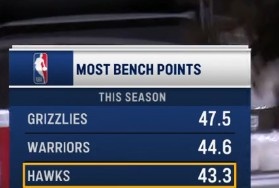 3月15日訊 今早7點(diǎn)30分,老鷹對陣快船。轉播方曬出一組數據,本賽季至今替補場(chǎng)均得分前三的球隊分別是:1、灰熊,47.5分2、勇士,44.6分3、老鷹,43.3分 標簽: 籃球 NBA 灰熊 勇士 老鷹