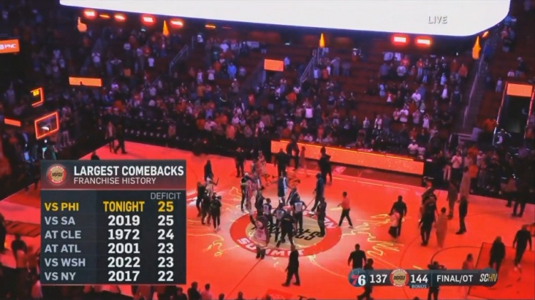 25分也追平了火箭隊史最大的落后分差逆轉,他們在2019年曾逆轉馬刺25分。