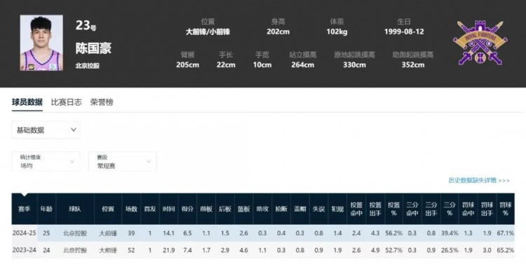 陳國豪今年效率還行,但出場(chǎng)機會(huì )被薩林杰+沈梓捷進(jìn)一步擠壓