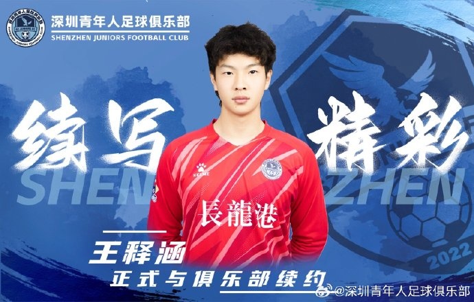 王釋涵今年20歲,司職門(mén)將,球員去年年初從上海申花轉會(huì )深圳青年人,此次順利續約。