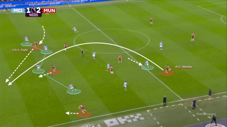 曼聯(lián)的制勝進(jìn)球是令人震驚的,尤其是上半場(chǎng)早些時(shí)候利桑德羅-馬丁內斯在身后為霍伊倫送出了幾乎相同的傳球。曼城根本就沒(méi)有吸取教訓。
