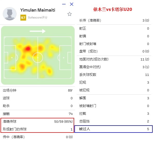 依木蘭最被球迷津津樂(lè )道的一幕,就是發(fā)生在跟卡塔爾U20的比賽里。當時(shí)依木蘭用一個(gè)布斯克茨式轉身完成變向,隨后送出直塞球給到隊友陳澤仕,帶來(lái)了隨后的反擊機會(huì )。