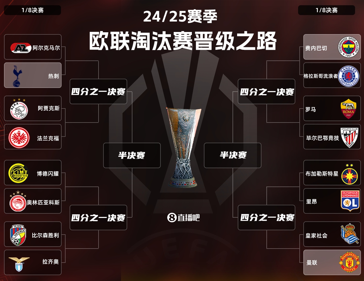歐聯(lián)1/8決賽對陣:曼聯(lián)vs皇社 熱刺vs阿爾克馬爾 費內巴切vs流浪者