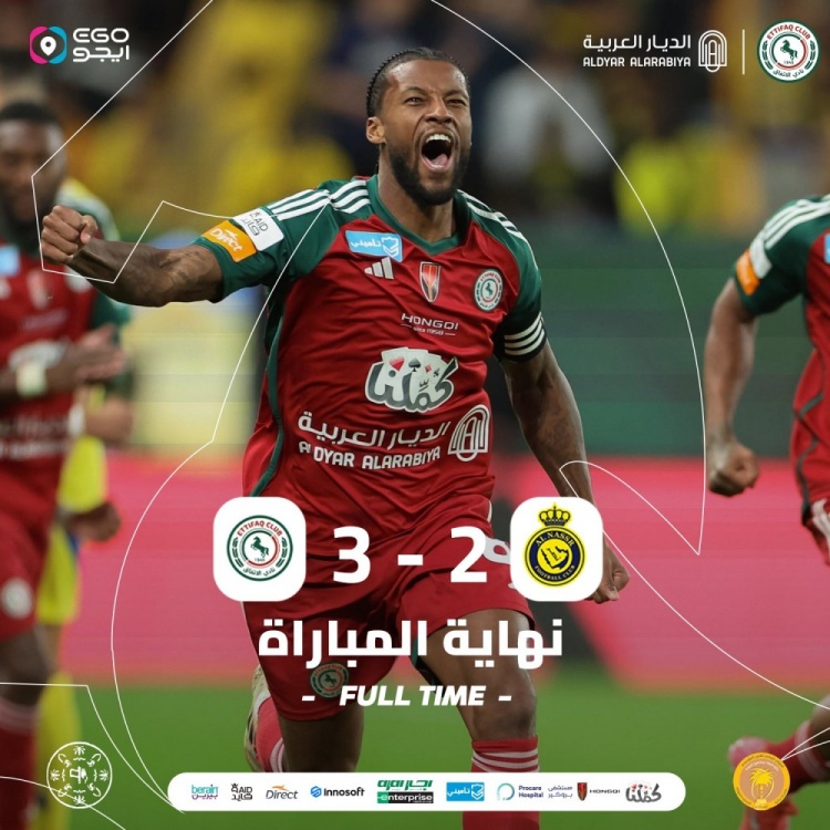 沙特聯(lián)-利雅得勝利2-3達曼協(xié)作距榜首8分 杜蘭直紅維納爾杜姆雙響