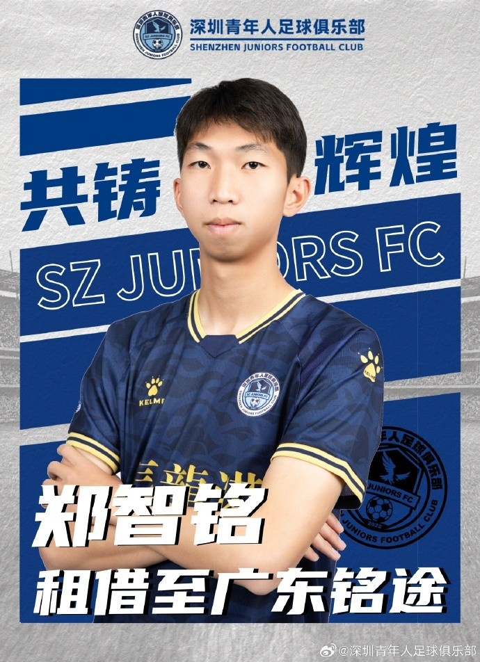 2月24日訊 官方消息,中甲深圳青年人隊球員鄭智銘、溫永駿,以租借形式加盟廣東銘途。