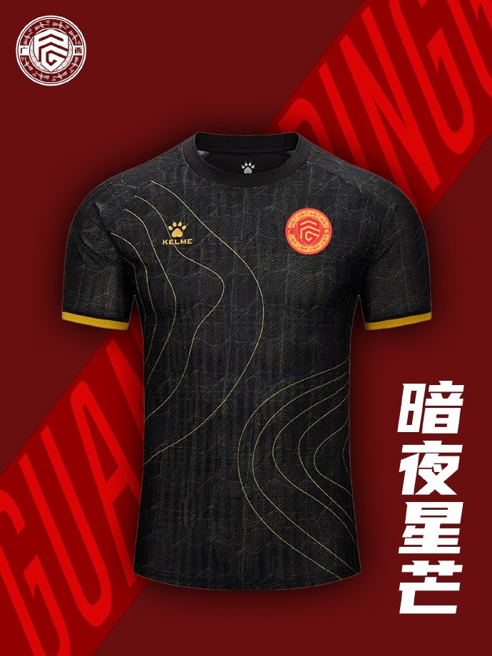 第二客場(chǎng)球衣源自廣西黑衣壯的族群標記,黑色代表著(zhù)力量與神秘,亦預示著(zhù)球隊在新賽季中將如黑夜中的捕手,以冷靜的頭腦和堅強的意志,在關(guān)鍵時(shí)刻給予對手致命一擊。胸前的金色線(xiàn)條既是喀斯特奇峰的暗號,亦是龍脊梯田優(yōu)美曲線(xiàn)的化身,暗色底紋如球網(wǎng)交織,象征著(zhù)球隊在纏斗中迸發(fā)出無(wú)窮的力量,無(wú)論何時(shí)何地,都將以?shī)^力一搏的姿態(tài)奪取最終的勝利!