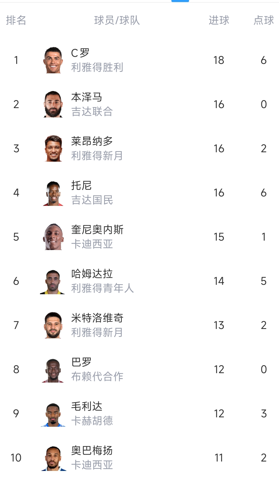 03月08日訊 沙特聯(lián)第24輪,十人利雅得勝利2-2利雅得青年人。最新沙特聯(lián)射手榜,C羅18球領(lǐng)跑,本澤馬、萊昂納多、托尼16球并列第二,奧巴梅揚11球第十。 標簽: 足球 C羅 利雅得勝利 五洲