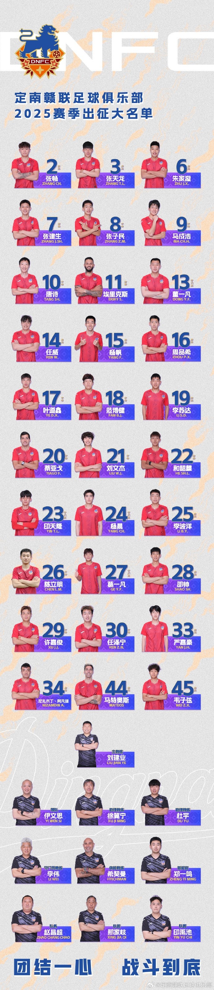 定南贛聯(lián)新賽季一線(xiàn)隊名單:三外援領(lǐng)銜&共30人入選,唐詩(shī)10號