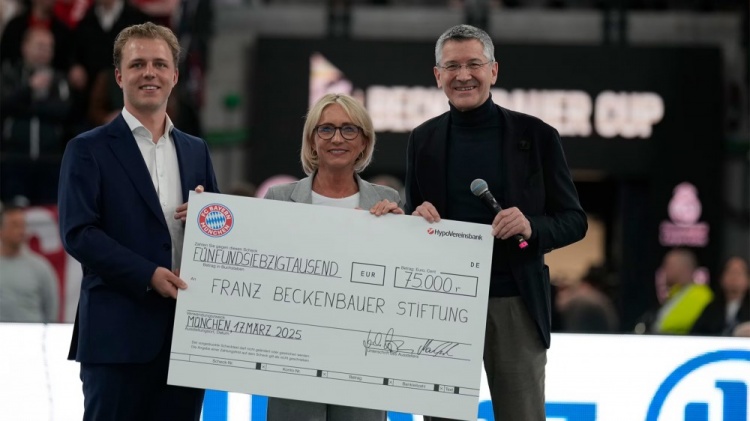 此外,本屆賽事總計獲得了7.5萬(wàn)歐元的收益,這筆收入捐獻給弗朗茨-貝肯鮑爾基金會(huì ),拜仁主席海納作為代表將支票交給貝皇的家人海蒂-貝肯鮑爾和約爾-貝肯鮑爾。