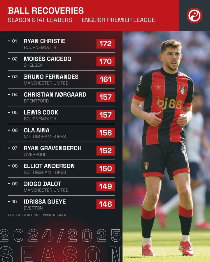 3月18日訊 國家隊比賽周到來(lái),英超也暫時(shí)告一段落,squakwa統計了本賽季英超贏(yíng)得球權情況,克里斯蒂居首。