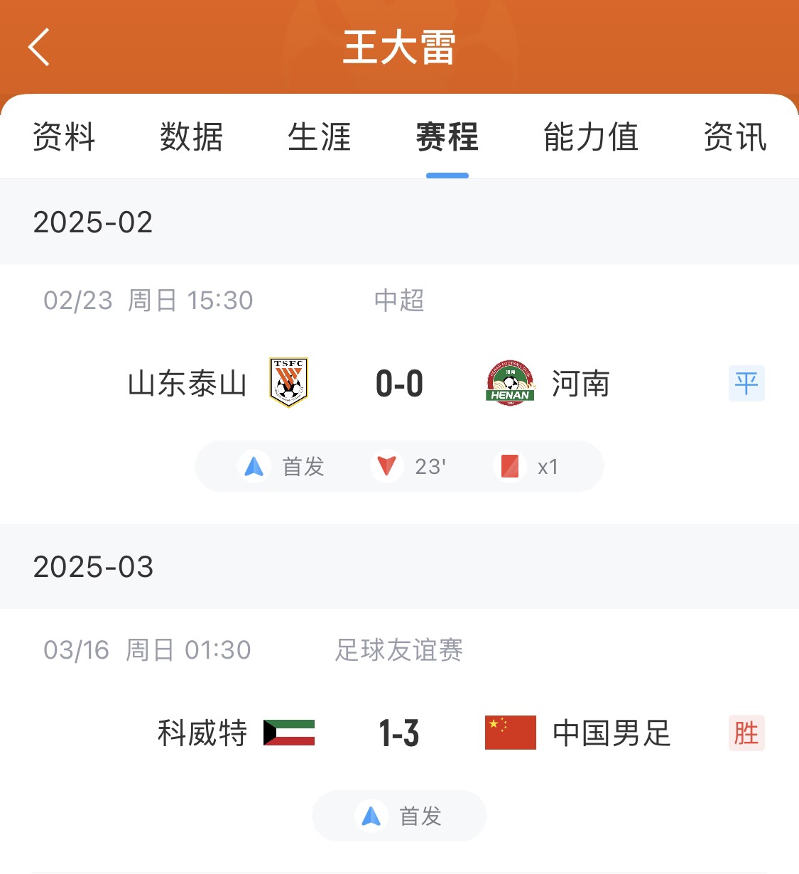 但2025賽季中超首輪泰山vs河南,王大雷出擊踢倒對手染紅,2月23日之后未參加正式比賽。而顏駿凌出戰了中超+亞冠的所有比賽。