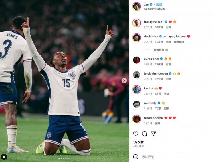 兩人也都在賽后通過(guò)社媒曬出自己的比賽照,但并未附加文字內容。賴(lài)斯和霍爾等隊友紛紛送上鼓勵:“為你感到高興”、“棒極了”…