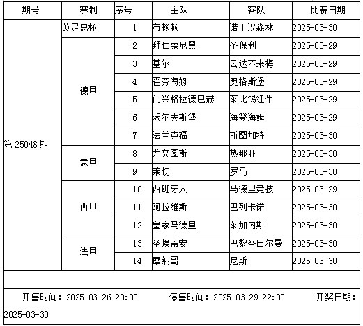 本周末,歐洲各大聯(lián)賽陸續開(kāi)打。傳足勝負彩游戲第25048期競猜對陣中,拜仁、尤文、馬競和皇馬陸續出戰。國際比賽日后,需多留意“FIFA病毒”對俱樂(lè )部的影響。