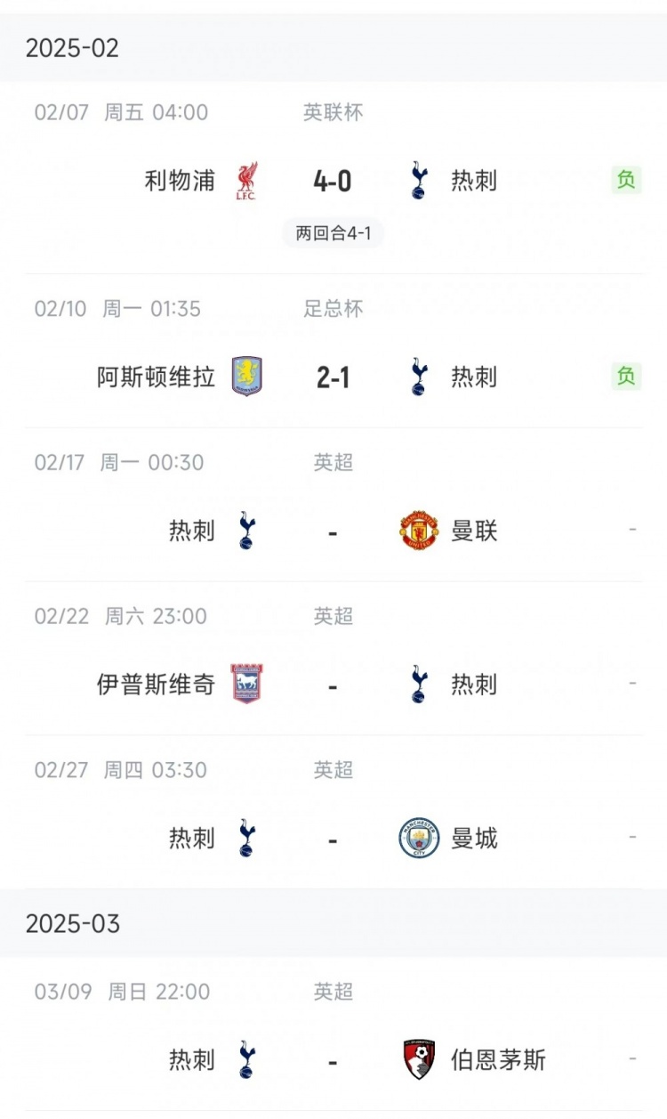 在此前進(jìn)行的聯(lián)賽杯半決賽次回合比賽中,熱刺客場(chǎng)0-4落敗于利物浦,兩回合總比分1-4出局。
