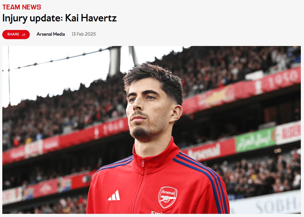 阿森納官方公布哈弗茨傷情,球員在訓練中腿筋受傷,本賽季報銷(xiāo)。