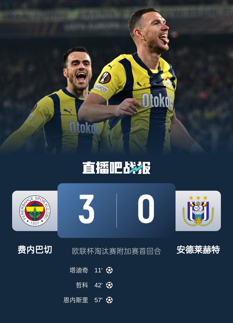 塔迪奇、哲科、恩內斯里,費內巴切3-0完勝安德萊赫特。